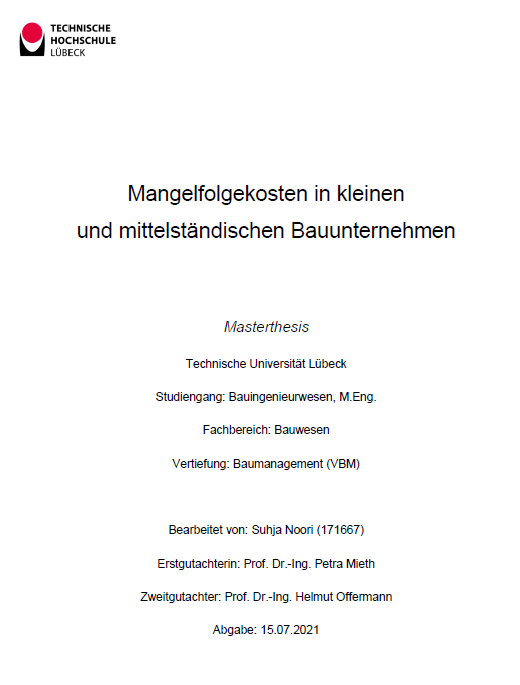 Empirische Studie zu Mangelfolgekosten in kleinen und mittelständischen Bauunternehmen im Rahmen einer Masterthesis.